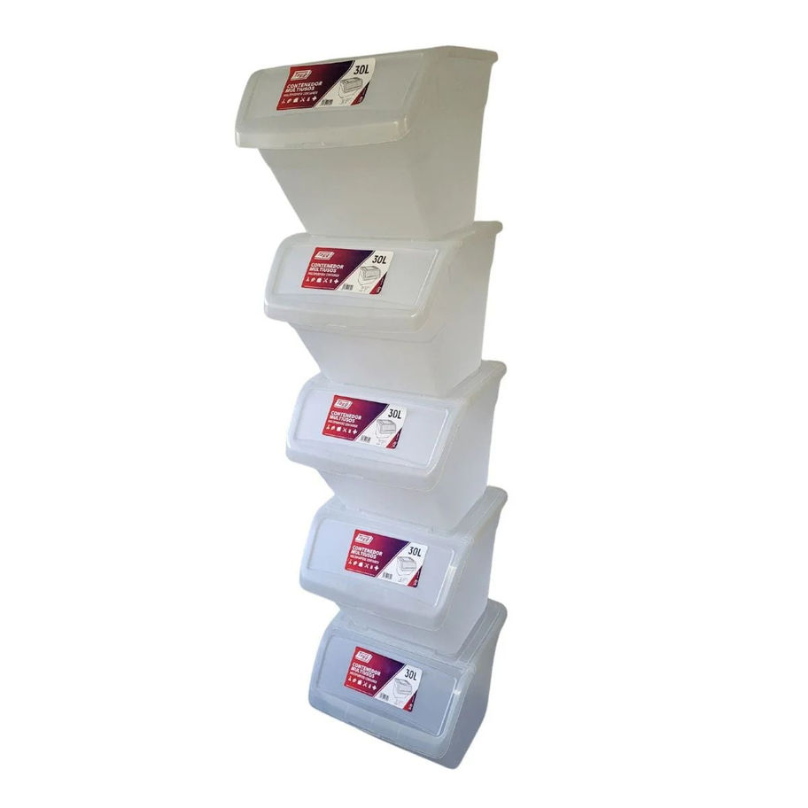 Set of 5 Stacking Container Box with Hinged Lid (TECO30)