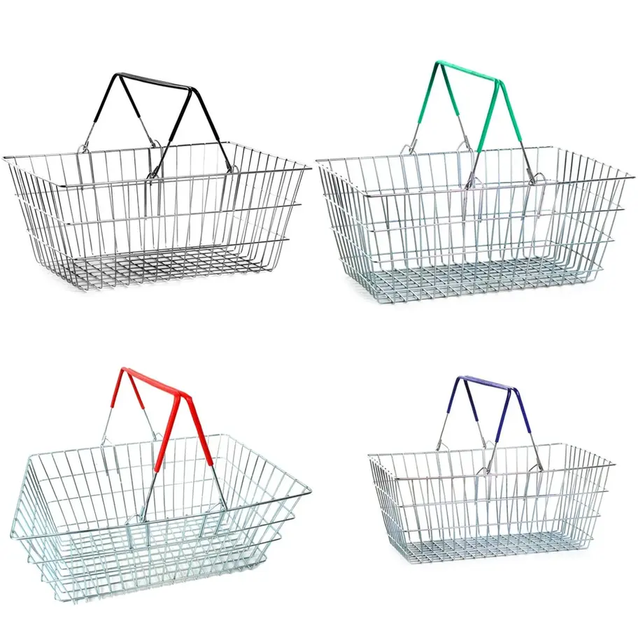 Wire Shopping Baskets with 2 Handles 21L (4 Handle Colours)